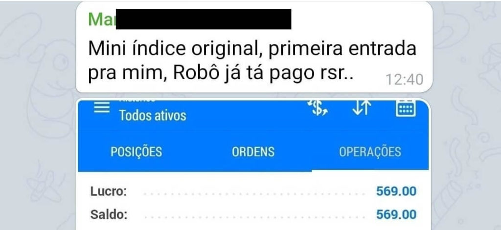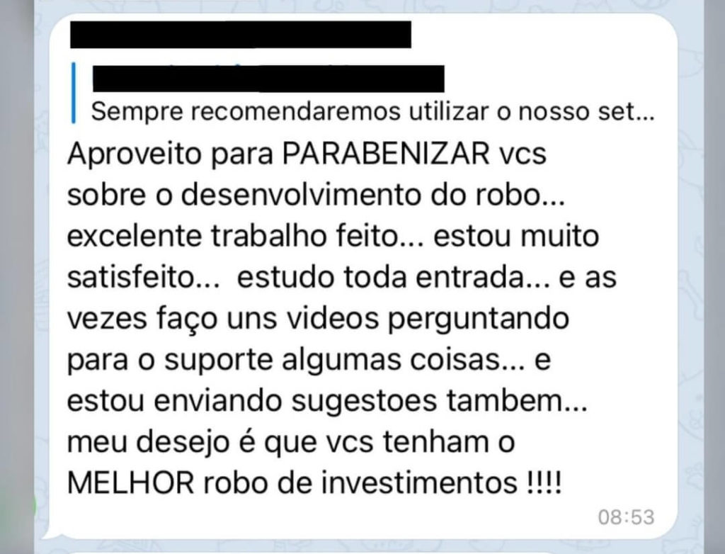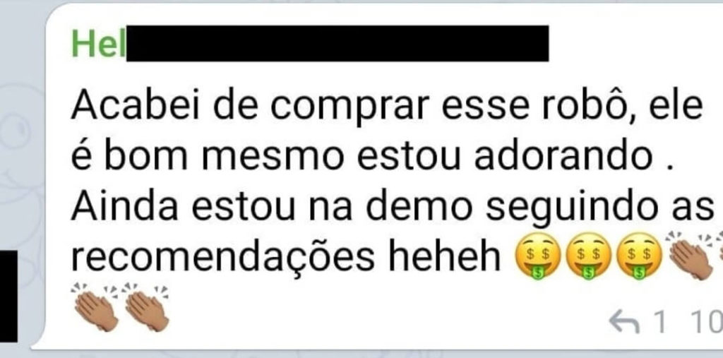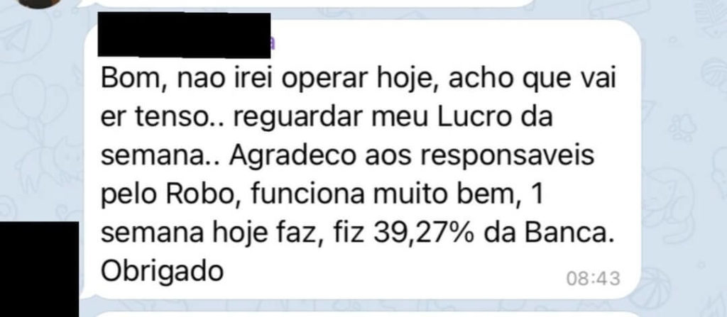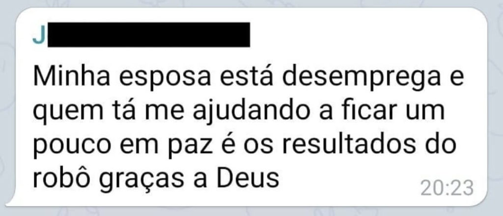 Disclaimer: A responsabilidade da tomada de decisão, parametrização e ativação do robô é única e exclusiva do investidor. A Robô Investidor Trader é uma empresa que fornece robôs de investimentos para investidores e traders que possuem o perfil de risco agressivo, e sua utilização deve ser liberada pela corretora apenas após o preenchimento da Análise de Perfil do Investidor (API), conforme instrução CVM 539/2013. Investimentos em renda variável envolvem risco e podem resultar em perdas, por isso ressalta-se que recomendamos a utilização de um portfólio de robôs para diversificação de risco e não nos responsabilizamos por possíveis perdas financeiras. Ressaltamos ainda que lucros passados jamais serão garantia de resultado no futuro. Isso não é considerado um conselho de investimento. Depoimentos/histórias de sucesso podem ser ficcionalizadas/não devem ser vistas como resultados esperados.